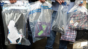 Mercadorias apreendidas pela polícia de Londres depois de distúrbios